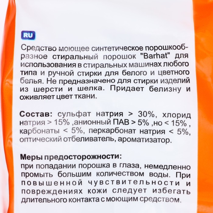 Стиральный порошок Barhat универсальный - это высококачественный продукт, предназначенный для стирки различных видов тканей.