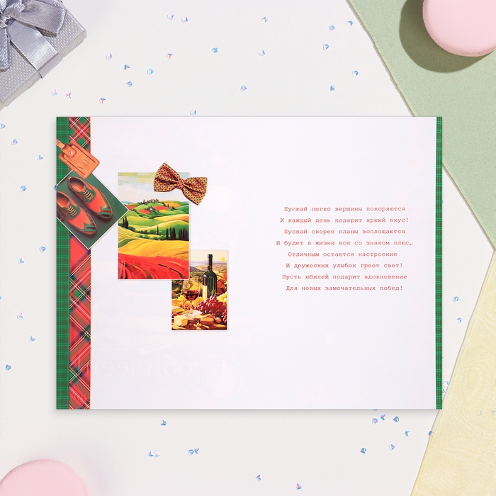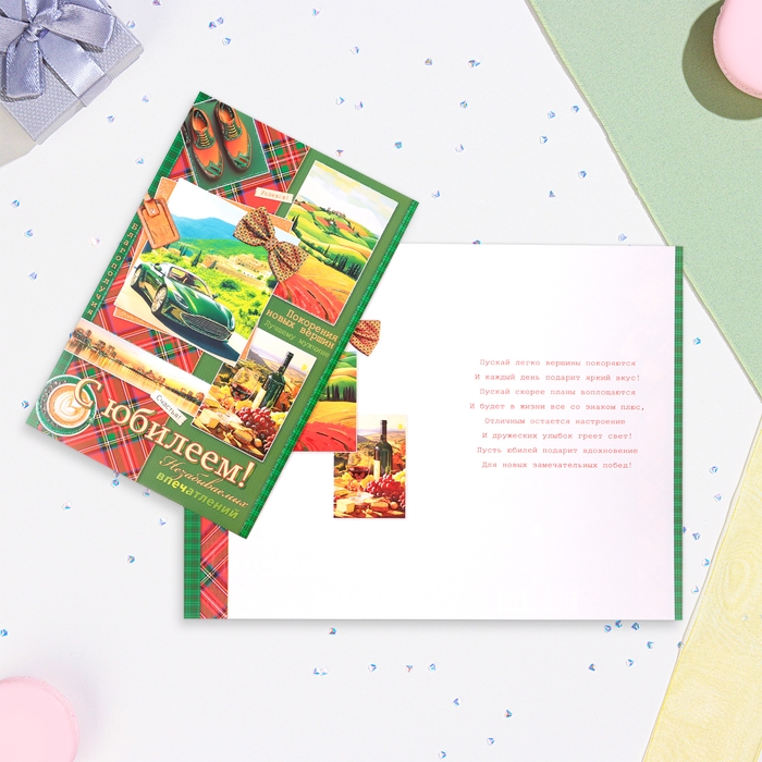 Открытка "С Юбилеем!" зелёная машина, конгрев, глиттер, А4