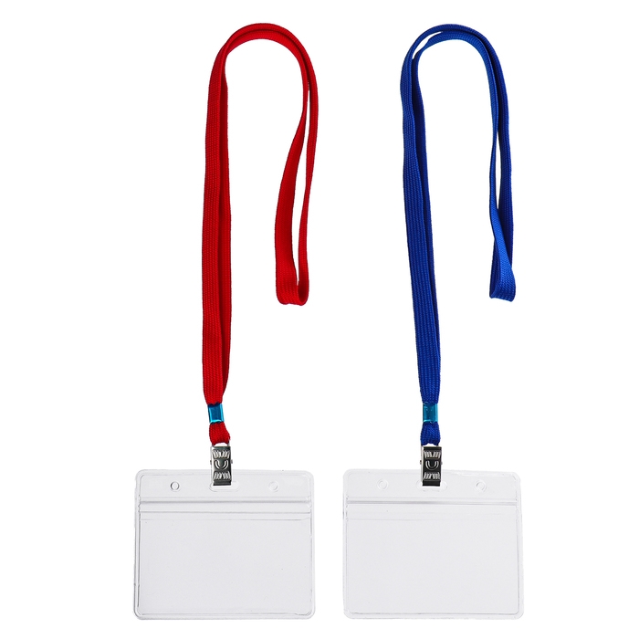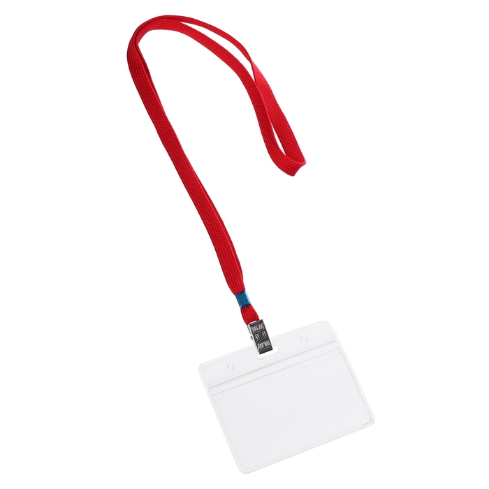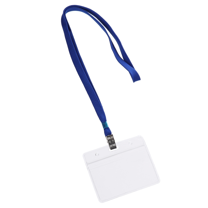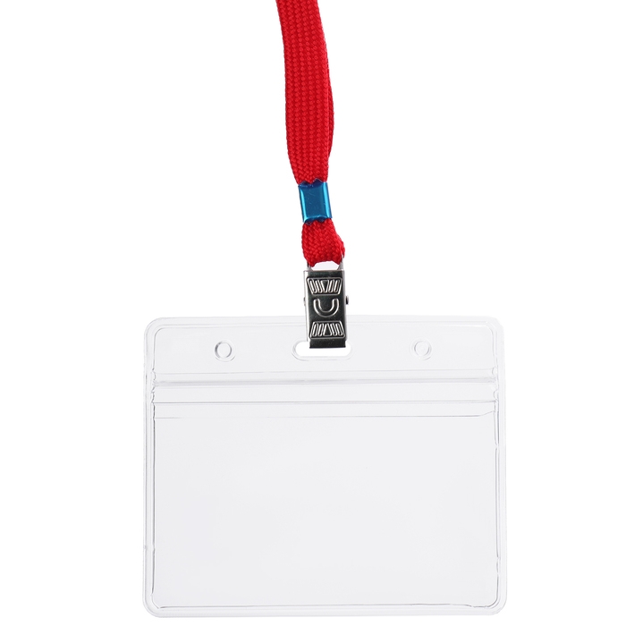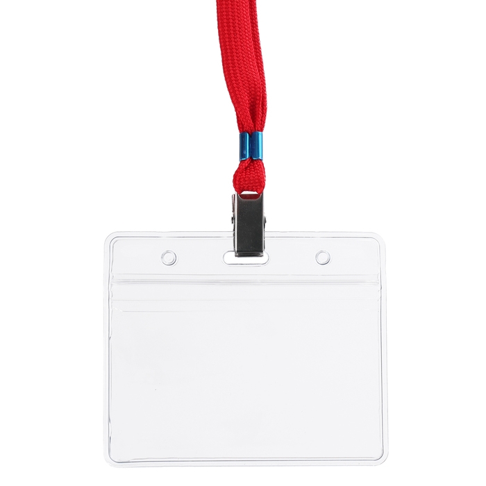 Бейдж горизонтальный в комплекте с лентой. Материал бейджа - ПВХ, цвет - прозрачный. Имеет размер вставки 98х58 мм. Лента изготовлена из полиэстера, имеет металлический зажим. Ширина ленты составляет 12мм. Бейдж подходит для ношения именных карточек и пропусков.