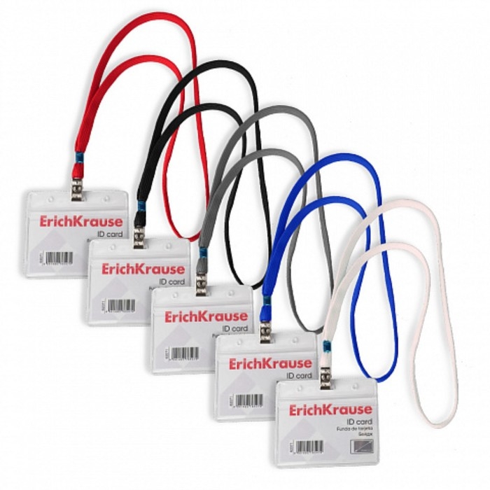 Бейдж горизонтальный 95 х 58 мм, ErichKrause прозрачный корпус, текстильная лента, цвет микс
