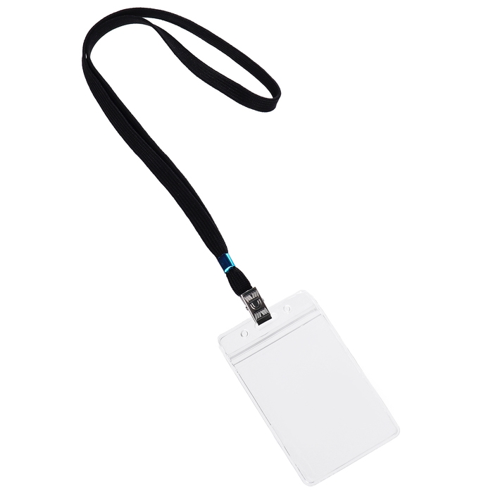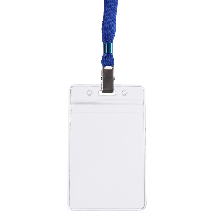 Бейдж вертикальный в комплекте с лентой. Материал бейджа - ПВХ, цвет - прозрачный. Имеет размер вставки 62х91 мм. Лента изготовлена из полиэстера, имеет металлический зажим. Ширина ленты составляет 12мм. Бейдж подходит для ношения именных карточек и пропусков.