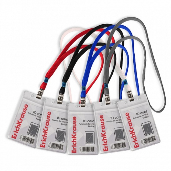 Бейдж вертикальный 62 х 91 мм, ErichKrause прозрачный корпус, текстильная лента, цвет микс