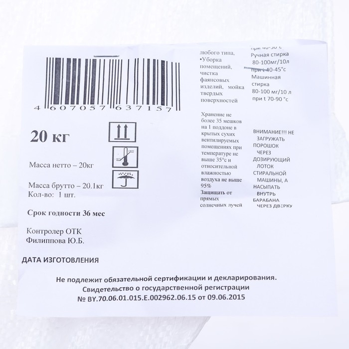 Стиральный порошок Barhat, Универсальный, 20 кг