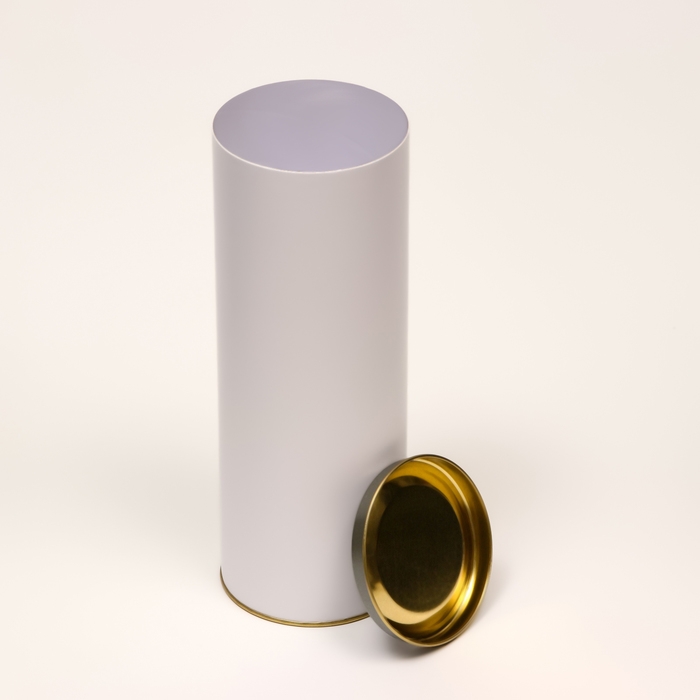 Тубус 92 х 260 мм (240 мм внутр. высота) под футболку, картон, белая, металлическая крышка
