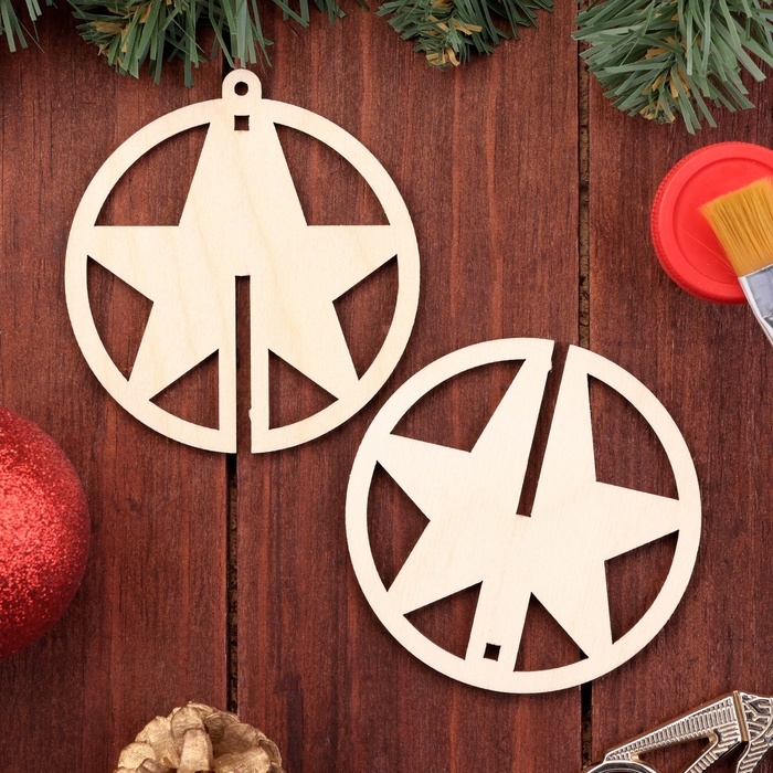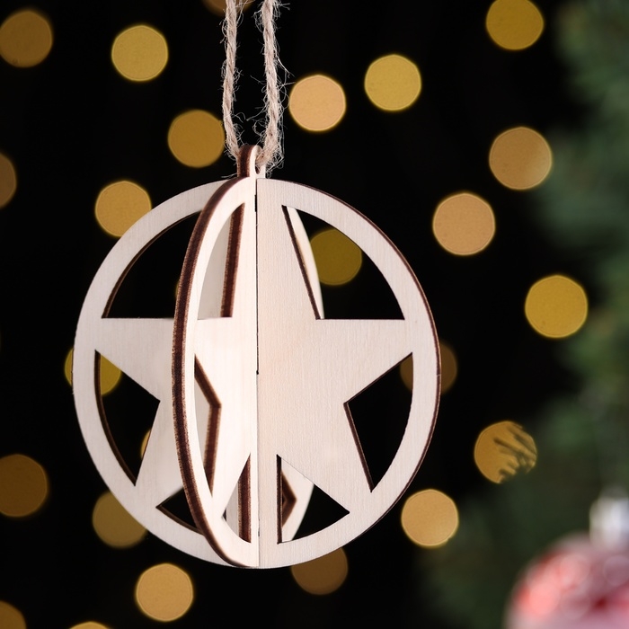 Деревянная игрушка на ёлку "Звезда", шар, диаметр 8 см