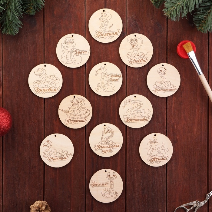 Набор ёлочных подвесок-кругов символ года "Змейки 2025",12 шт, диаметр-6,5 см