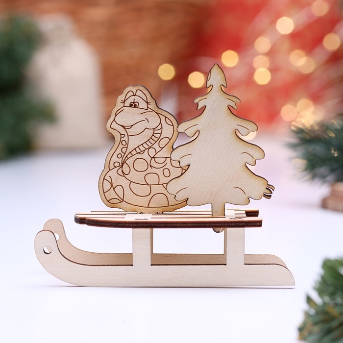 Сувенир санки "Змея с ёлочкой", вид 1, 10,5 х 4,7 х 7,8 см