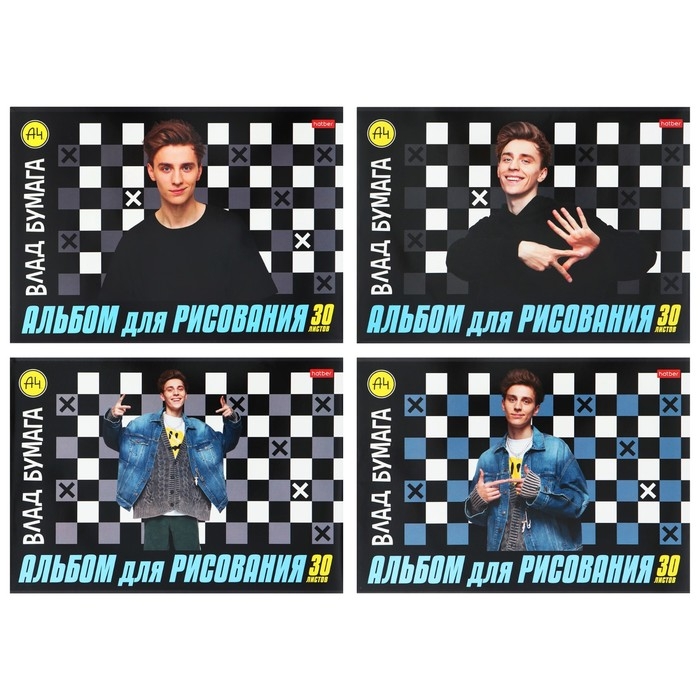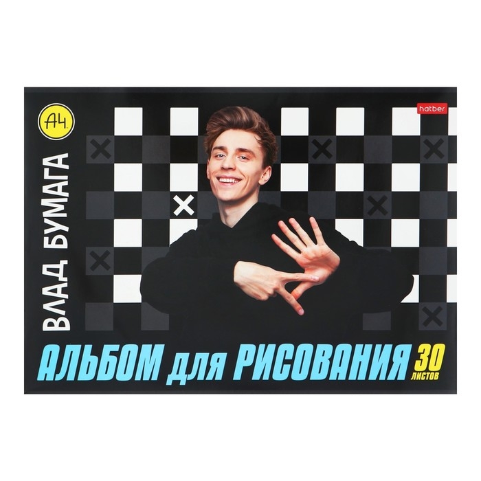 Альбом для рисования А4, 30 листа на скрепке "Влад А4", обложка мелованный картон, блок 100 г/м2, МИКС