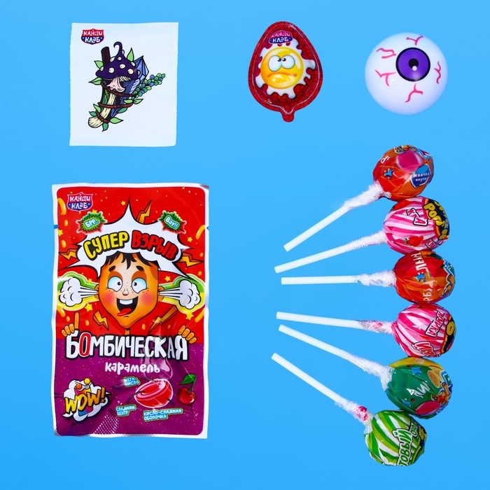 Карамель на палочке в наборе с подарком "Лизунец MAXI Бомбический" 112 г