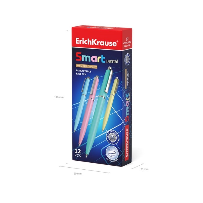 Ручка шариковая автоматическая, ErichKrause, Smart Matic Pastel узел 0.7 мм, цвет чернил синий,МИКС