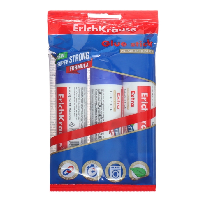 Набор клея-карандаша 3 штуки, ErichKrause Extra PVP, 21 г, усиленный