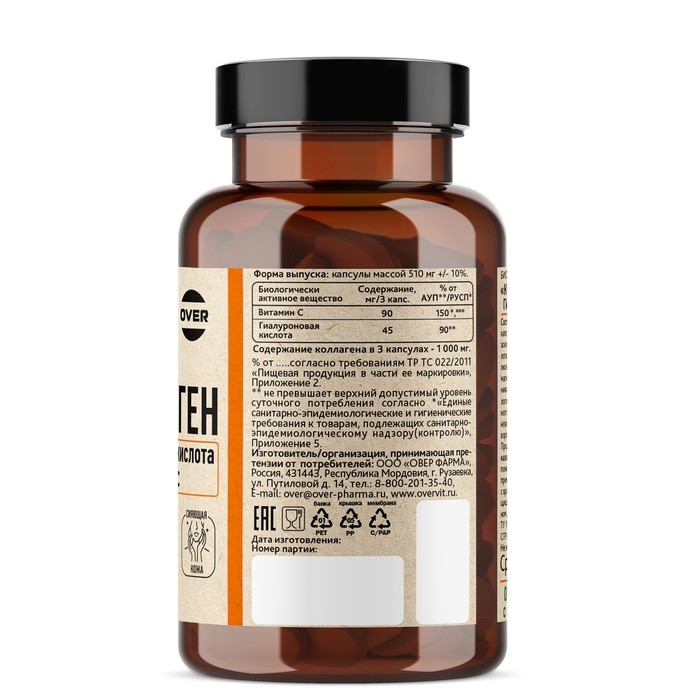 Коллаген+Витамин С+Гиалуроновая кислота OVERvit, 90 капсул