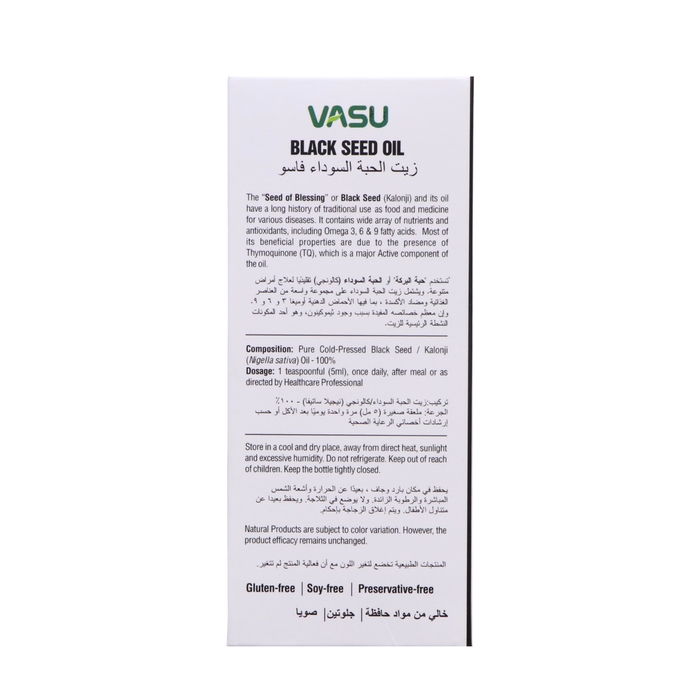 Масло чёрного тмина Васу, холодного отжима, 125 мл