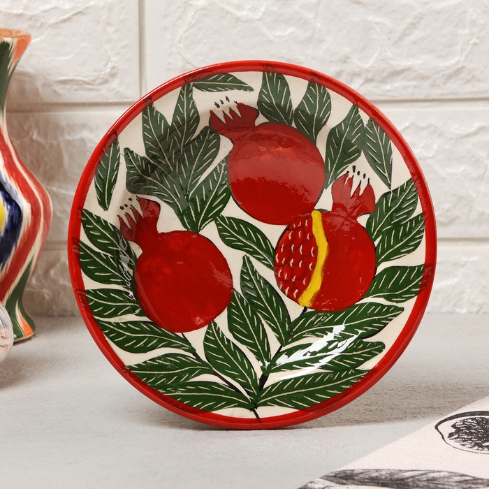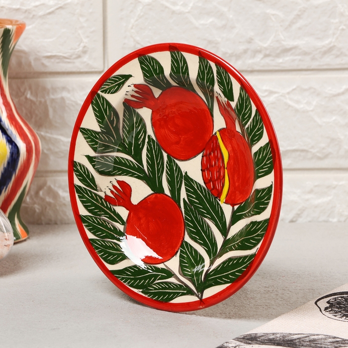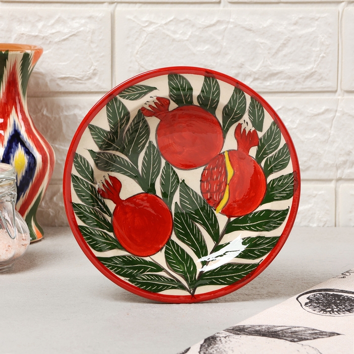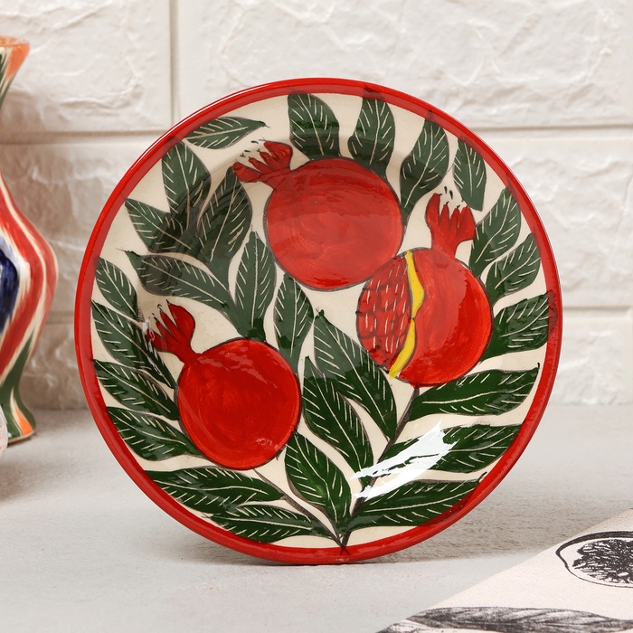 Тарелка Риштанская Керамика "Гранаты", плоская, 17 см,