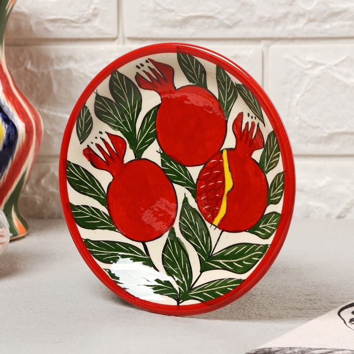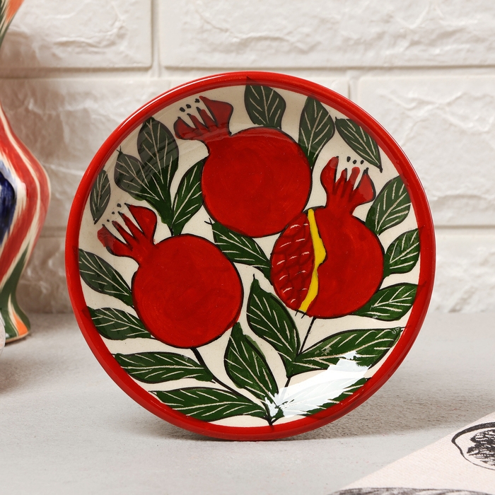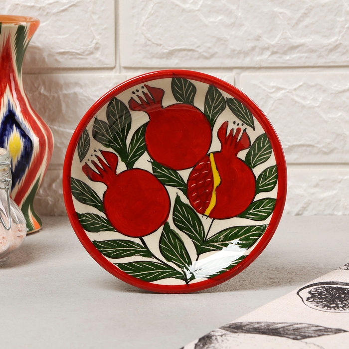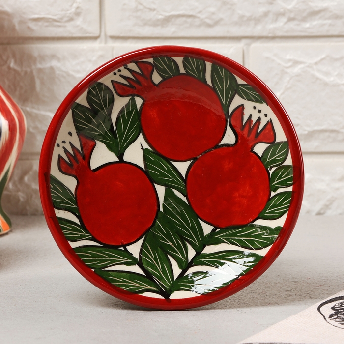 Тарелка Риштанская Керамика "Гранаты", плоская, 15 см,