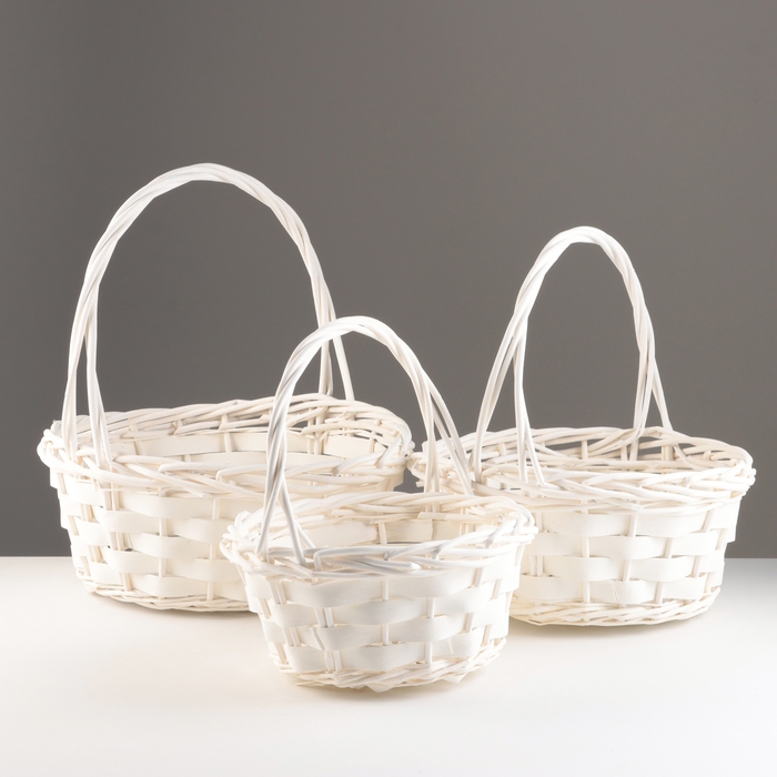 Набор корзин из 3 шт, 39х39х16х40 см, 33х33х14,5х35 см, 27х27х13х30 см, белый, ива