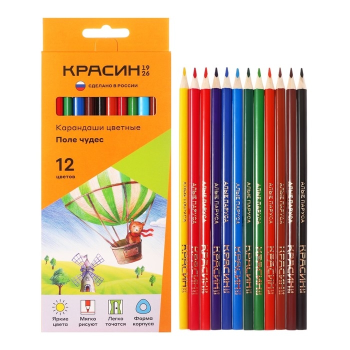Набор карандашей цветных Красин "Поле чудес", трёхгранные, заточенные, европодвес, 12 штук