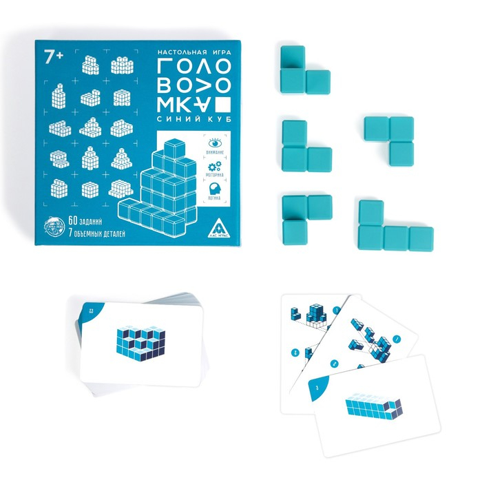 Как развить логику, сообразительность и пространственное мышление? С помощью объёмной головоломки «Синий куб». В ней вас ждут 7 объёмных деталей и 60 карточек с заданиями.