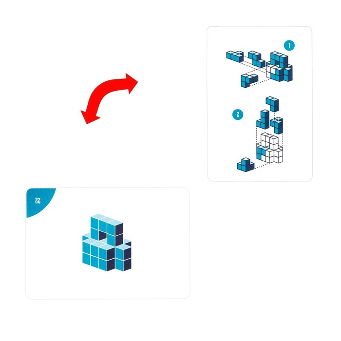 Ваша задача — с помощью всех имеющихся деталей составить точно такую же фигуру, как в карте с заданием. Также можно составлять собственные фигуры из деталей, а ещё — выполнять задания с карточек на время.