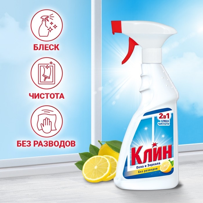Средство для мытья стекол и зеркал Клин 2 в 1 "Лимон", 500 мл