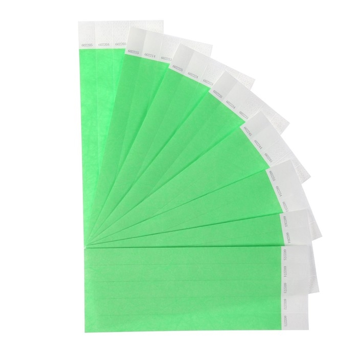 Бумажный контрольный браслет "Зелёный неоновый" TYVEK 100 штук