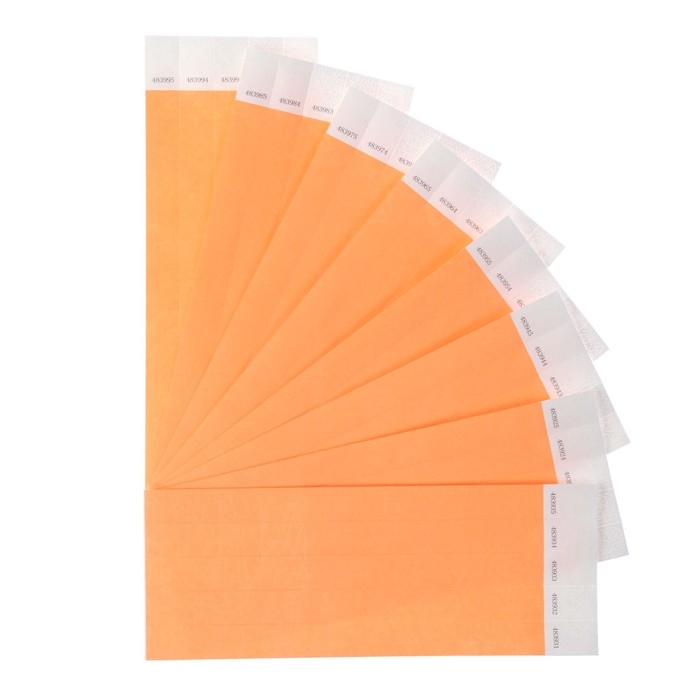 Бумажный контрольный браслет "Оранжевый неоновый" TYVEK 100 штук