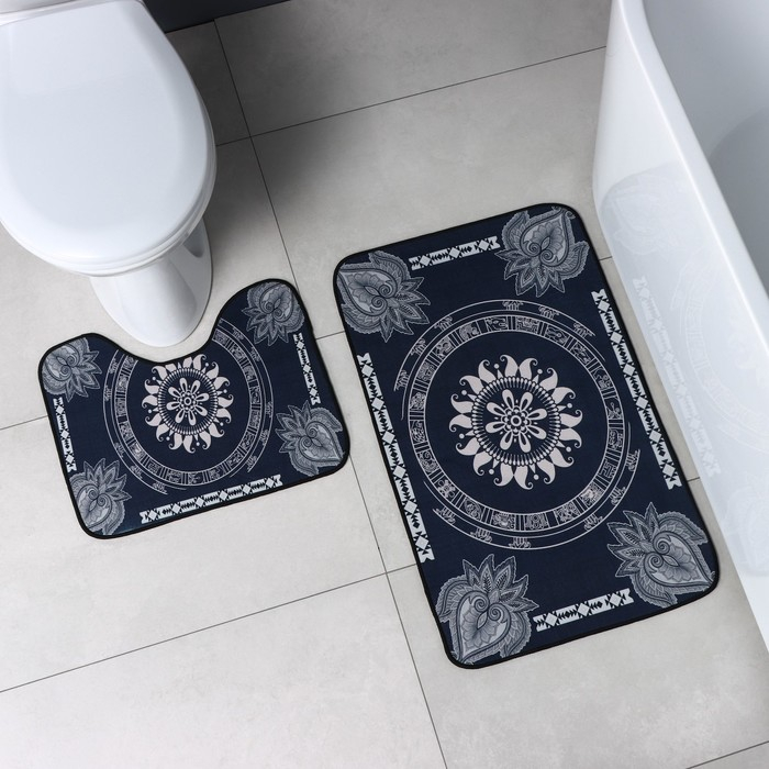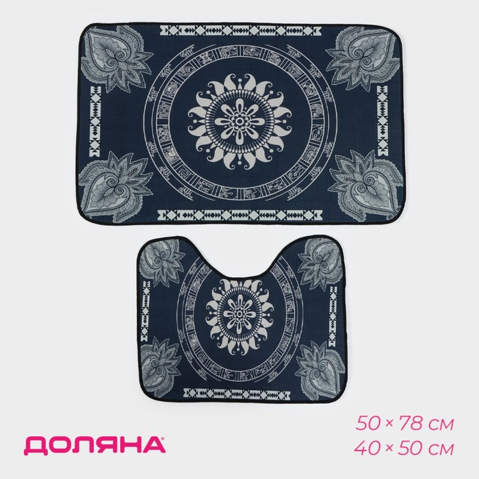 Коврики для ванной и туалета Доляна «Адуор», 2 шт: 50×78 см, 40×50 см, цвет серый
