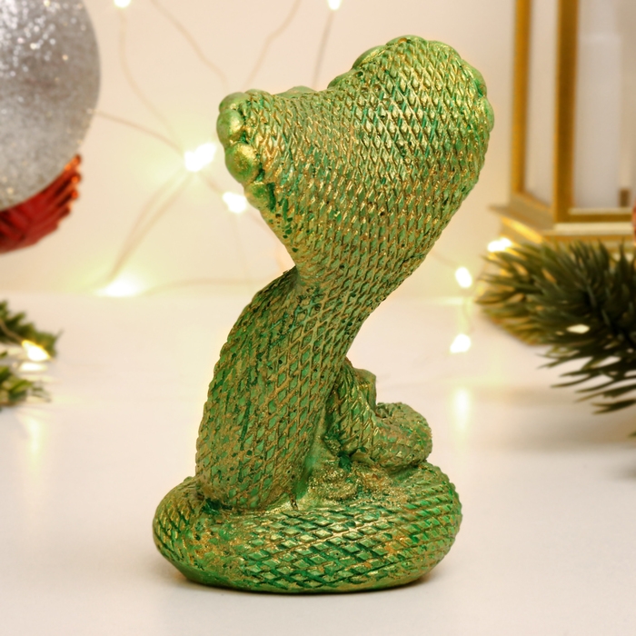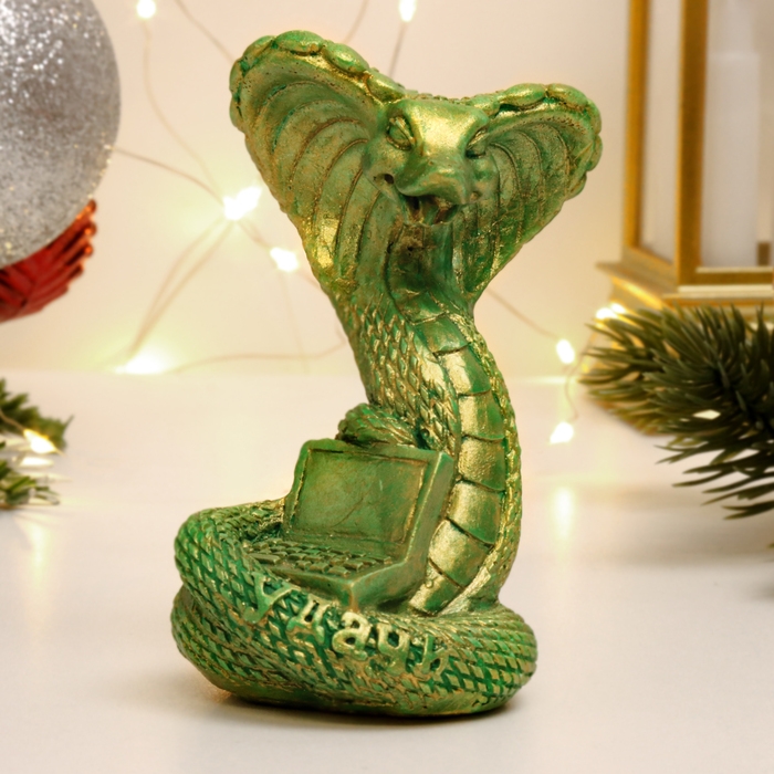 Фигура "Змея с ноутбуком" зеленый с позолотой, 8см