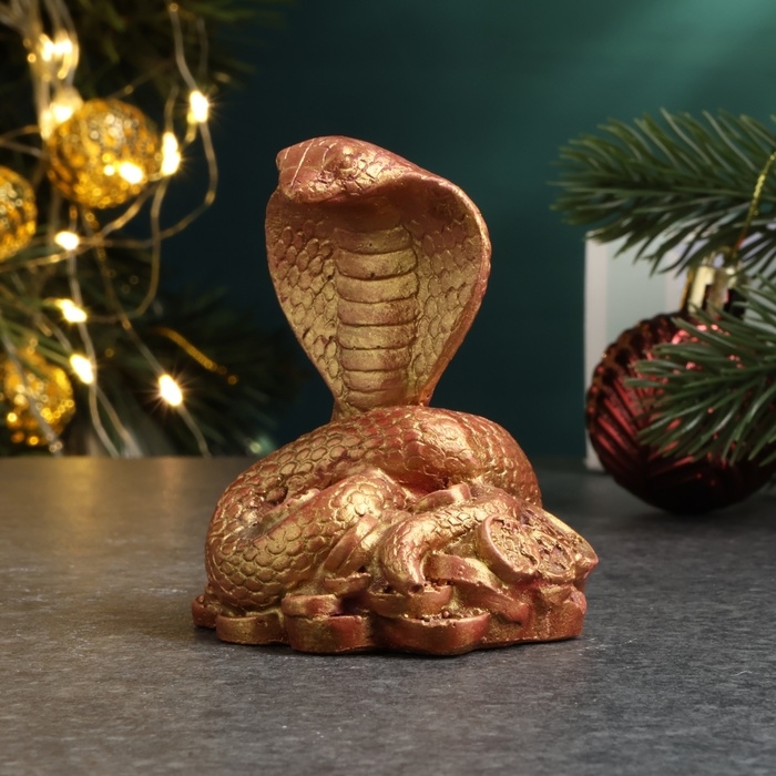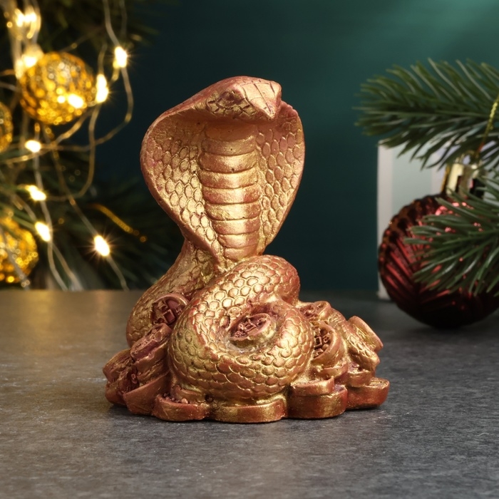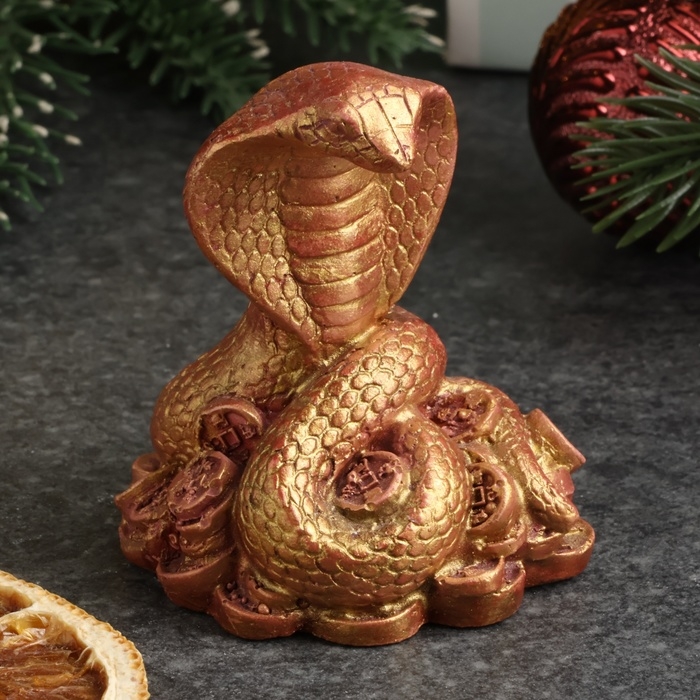 Фигура "Змея Кобра на деньгах" бордовый с позолотой, 8х5х5см