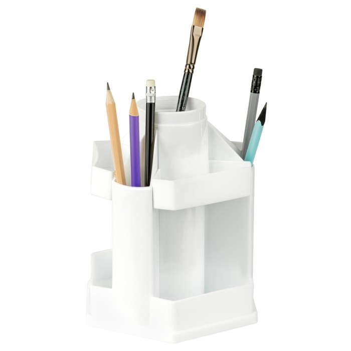Настольная подставка «СТАММ» предназначена для хранения канцелярских принадлежностей. Изделие размером 12 x 14 x 17,5 см обладает классическим дизайном. Вместительная и устойчивая подставка имеет 10 отделений разной высоты и формы. Изготовлена из качественного полипропилена. Свободно вращается на 360 градусов. Поставляется без наполнения. Цвет изделия: белый.