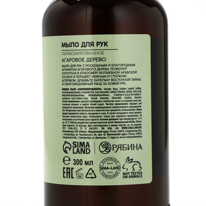 Мыло для рук жидкое URAL LAB, 300 мл, аромат агарового дерева