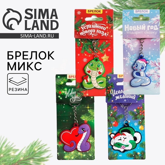 Брелок новогодний, для ключей, резиновый «Новогодний», микс, 4 шт
