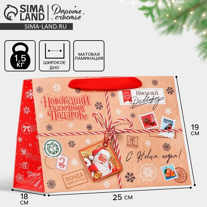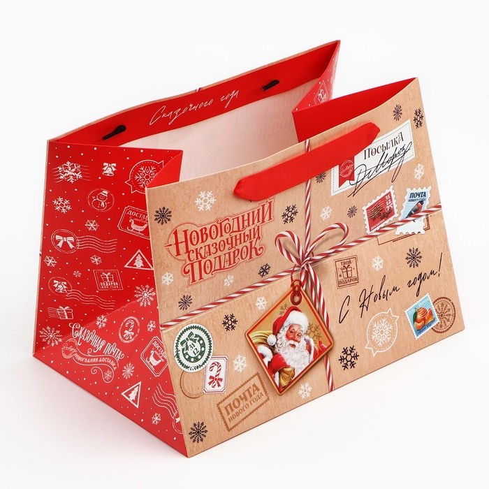Пакет подарочный новогодний с широким дном «Сказочный подарок», 25 х 19 х 18 см