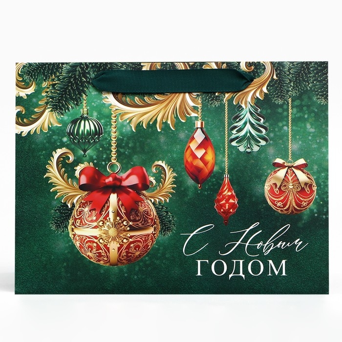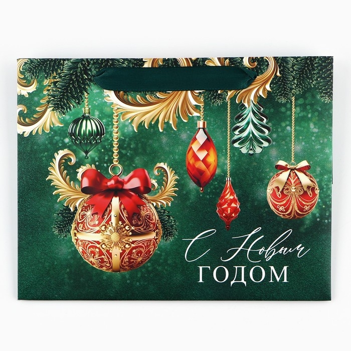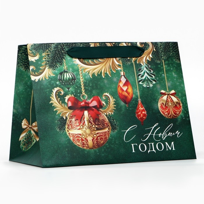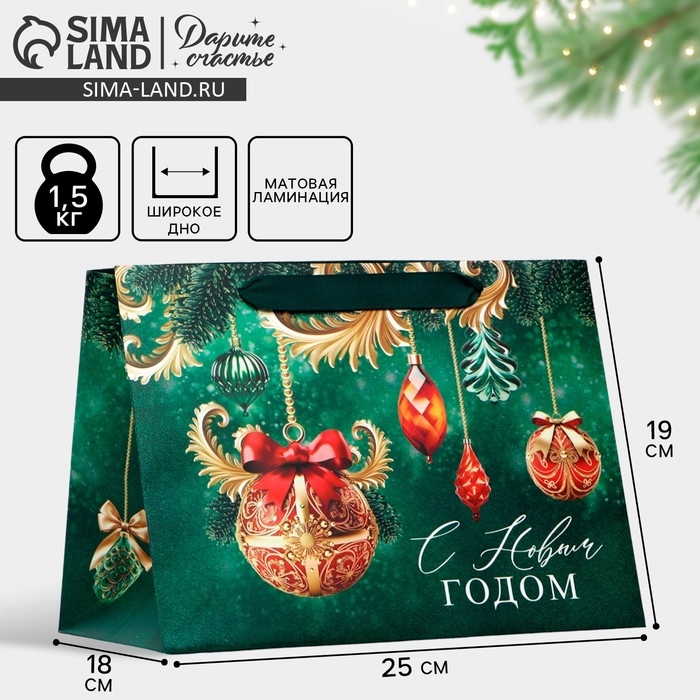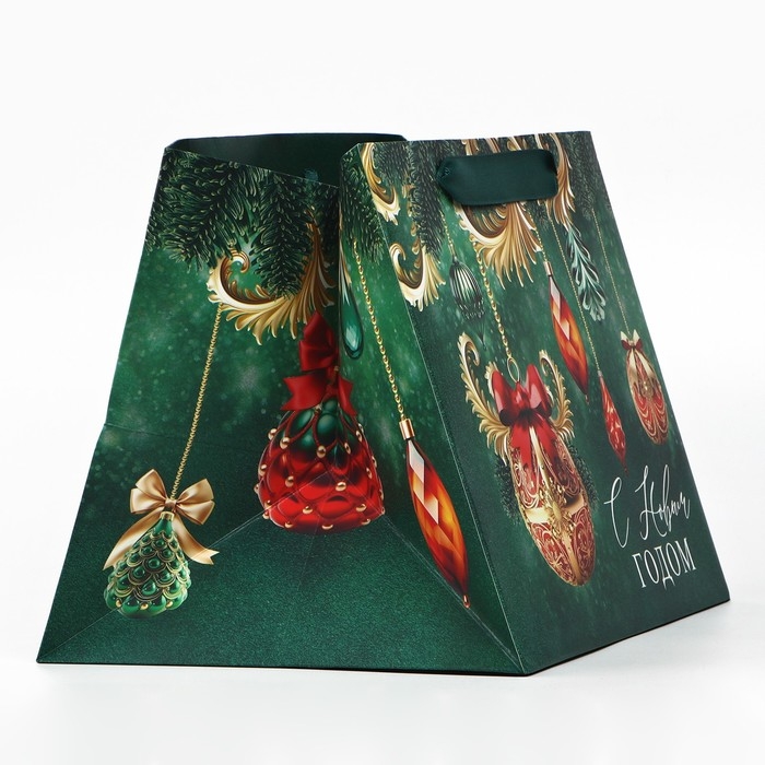 Пакет подарочный новогодний с широким дном «С Новым годом», 25 х 19 х 18 см