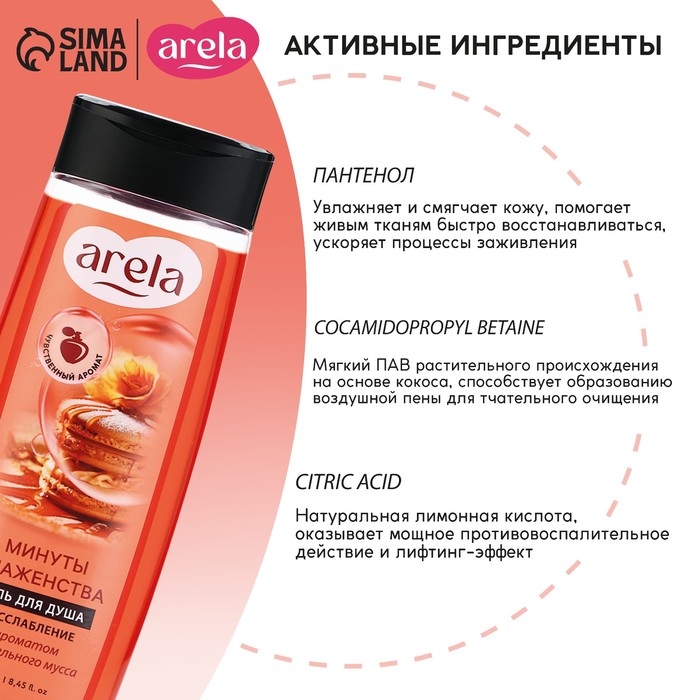 Гель для душа женский «Минуты блаженства», 250 мл, аромат карамельного мусса, ARELA