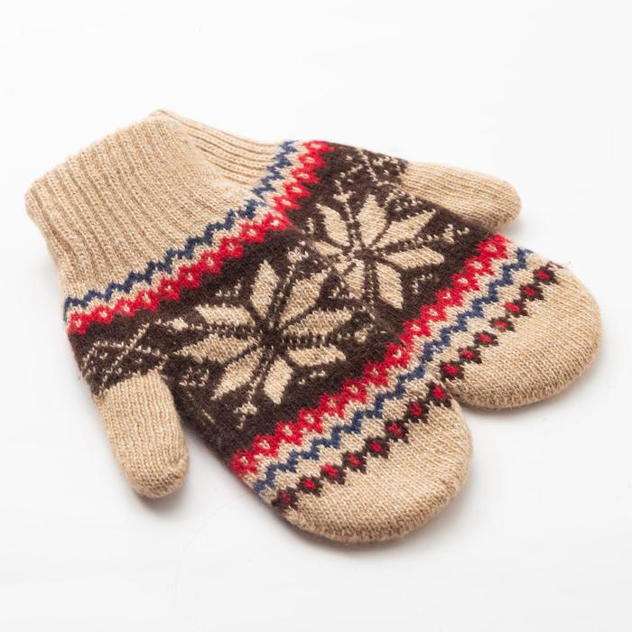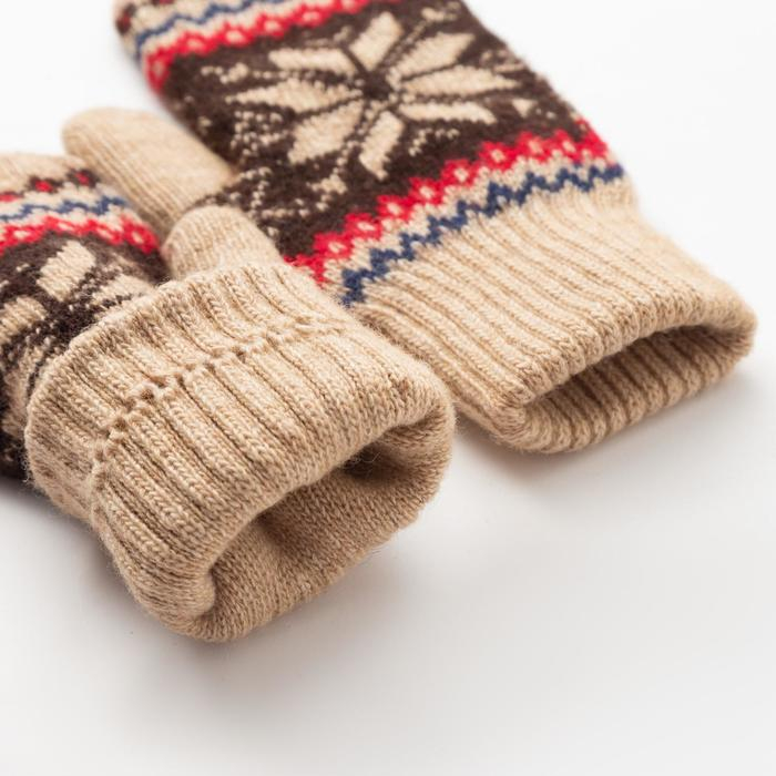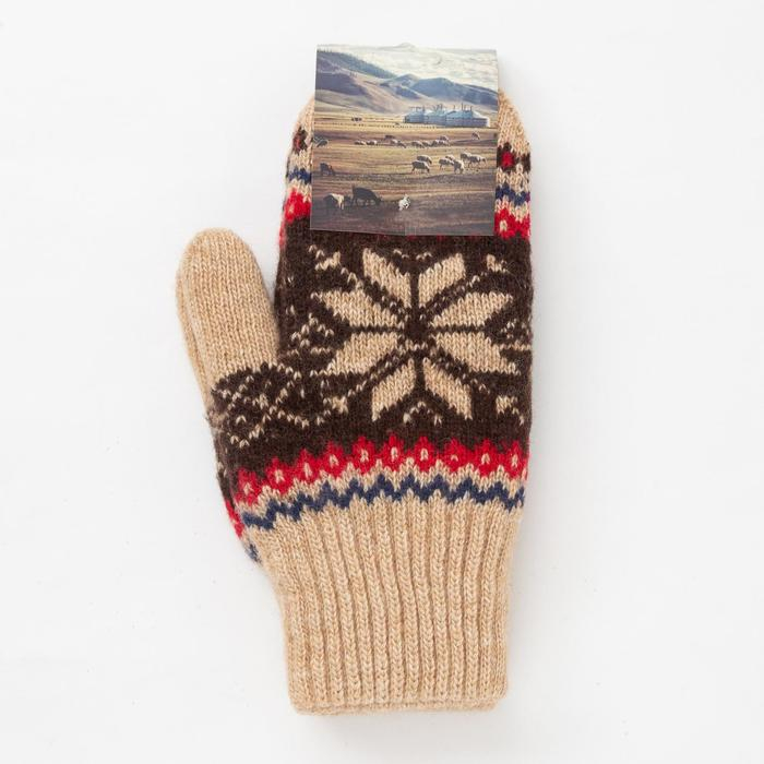 Варежки женские из монгольской шерсти "Снежинка", цвет бежевый, размер 17-19