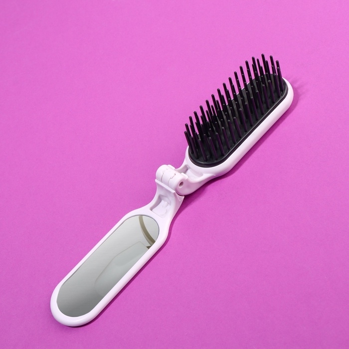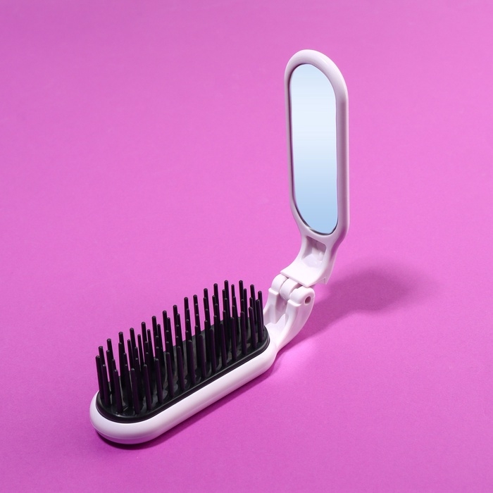 Расчёска массажная, складная, с зеркалом, 3 × 10 см, цвет пыльно-розовый