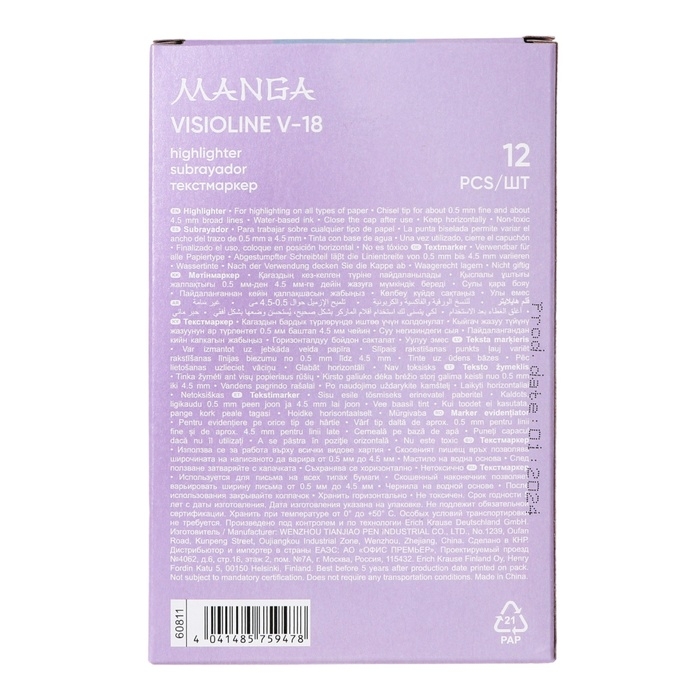 Маркер текстовыделитель ErichKrause Visioline V-18 "Manga", скошенный узел 0,5 - 4,5 мм, на водной основе быстро высыхает, микс