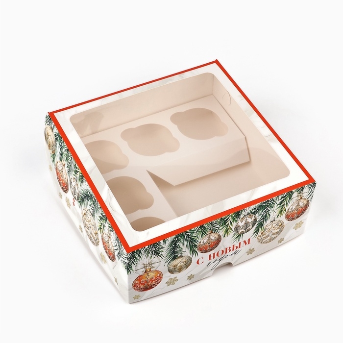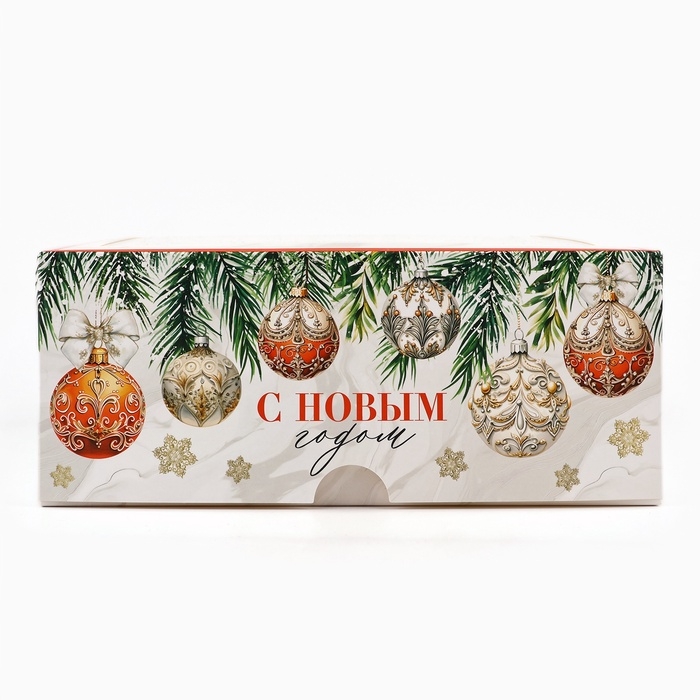 Коробка для капкейков и бенто-торта «С Новым годом!», шары, 25 х 25 х 10 см