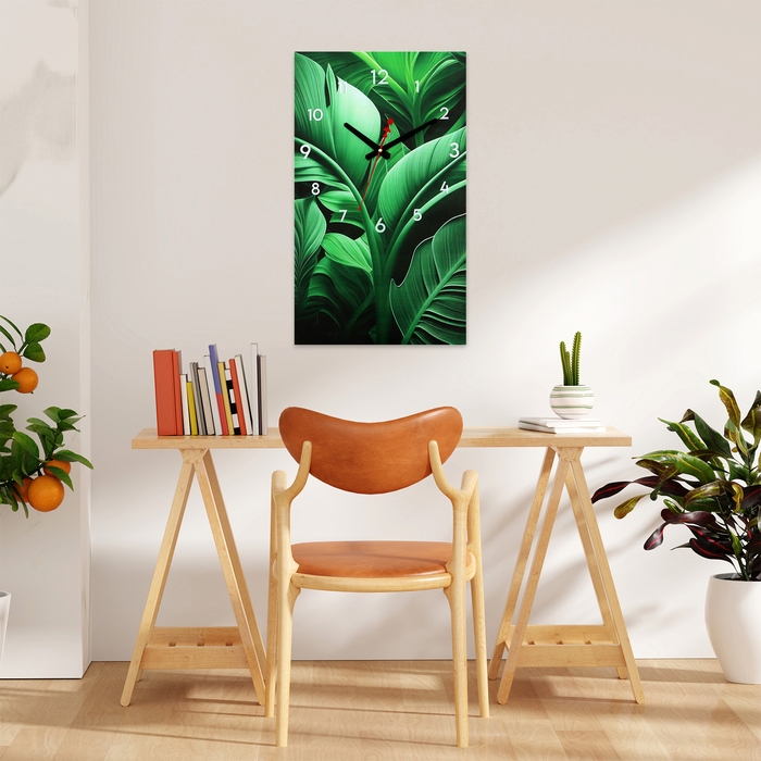 Часы-картина настенные интерьерные "Листья", бесшумные, 35 х 60 см