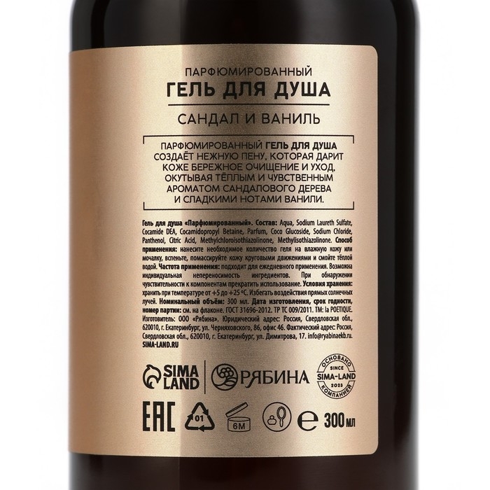 Гель для душа женский, 300 мл, аромат сандала и ванили, LA POETIQUE