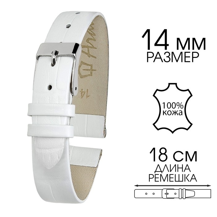 Ремешок для часов, 14 мм, запряжник 75 мм, горт 105 мм, натуральная кожа, белый