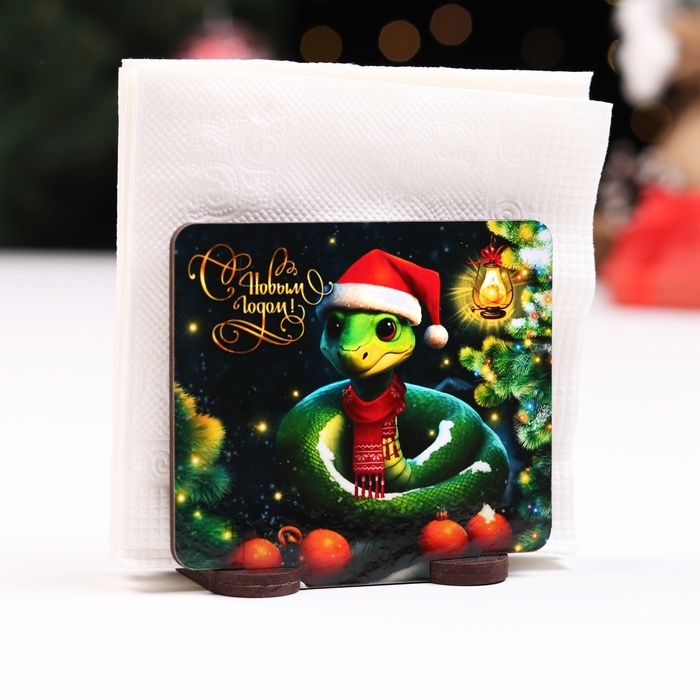 Салфетница №4 "Змея в шапке с мандаринами", квадратная