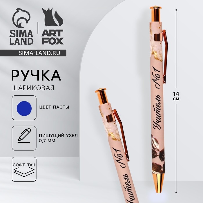 Ручка шариковая автоматическая софт-тач пластик «Учителю: Учитель №1», синяя паста, 0.7 мм