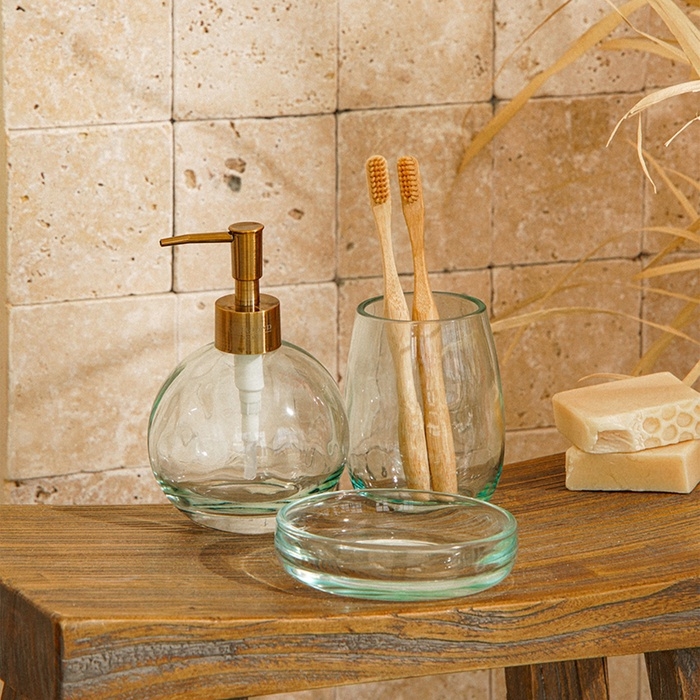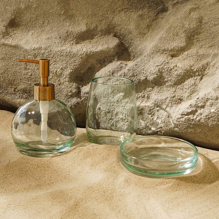 Изготовленные из прозрачного стекла, все элементы набора излучают элегантность и нежность, легко вписываясь в любой интерьер. Отсутствие ярких рисунков и однотонный дизайн делают эти аксессуары универсальными, что позволяет им сочетаться с разнообразными стилями оформления.
