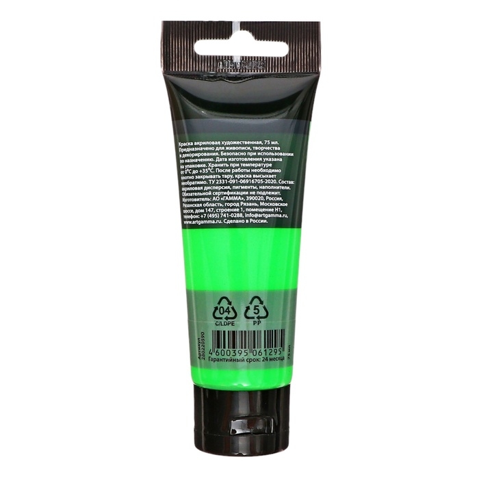 Краска акриловая туба 75мл Гамма "Студия" №590 зеленая неоновая
