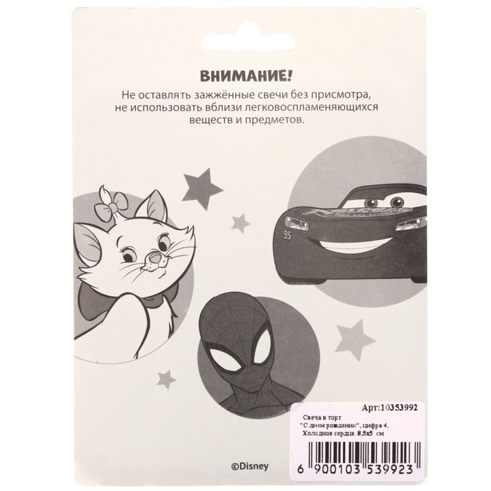 Свеча в торт цифра 4 "С Днем рождения", Холодное сердце, 8,5×5 см