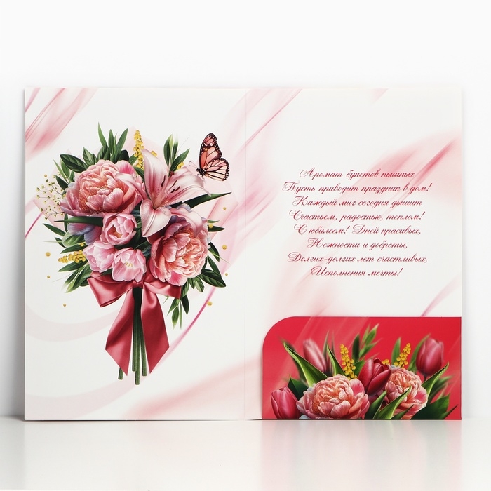 Открытка поздравительная «С юбилеем!», цветы, 19 х 29 см