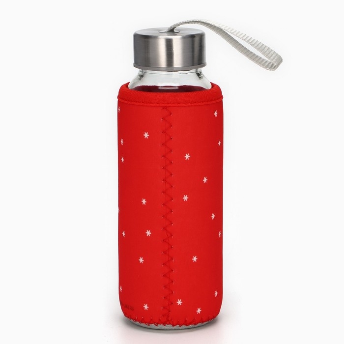 Бутылка для воды стеклянная в чехле «Идея», 300 мл, h=17,5 см, рисунок МИКС