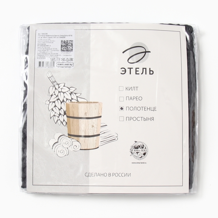 Полотенце вафельное банное Этель "Boho" 45*90 см, цв. темно-серый, 100% хл